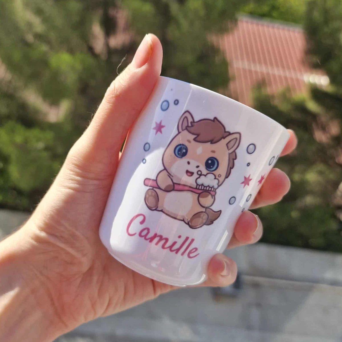 Un gobelet adorable et personnalisé avec le prénom de votre enfant, idéal pour faciliter le lavage des dents tout en décorant la salle de bain.