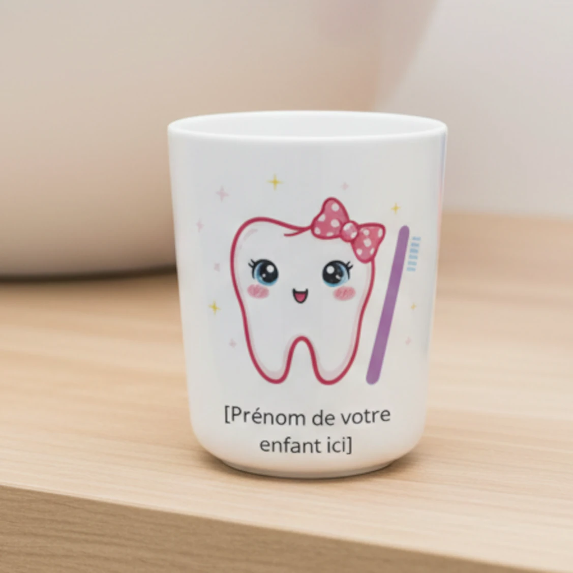 Un gobelet adorable et personnalisé avec le prénom de votre enfant, idéal pour faciliter le lavage des dents tout en décorant la salle de bain.